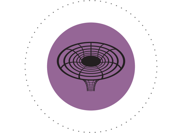 Hugely dense objects with massive gravitational pull, creating a hole in the fabric of space time from which light cannot escape. But not a hole in the sense of a portal.