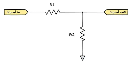 This is essentially a voltage divider. From basic circuit laws, the current flowing through the both resistors must be the same. Series resistances sum in a straightforward way, so from Ohm’s law, this end-to-end current is I R1,R2 = V in /(R1+R2). V in stands for the externally-supplied voltage on the input leg.